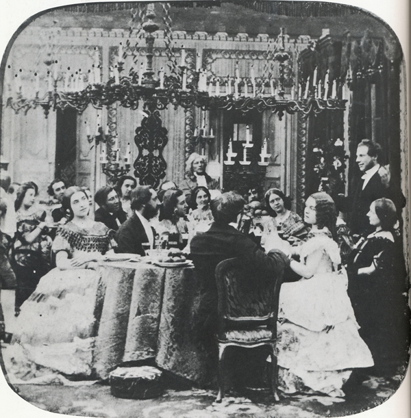 Dinner party, c. 1860. source: Michael and Ariane Batterberry's Fashion: The Mirror of History, 1982.